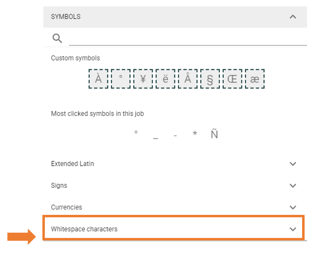 - These four characters cannot be copied to the search bar (source and target). When attempting to do so, only the character which is used to represent them will be copied. For example, trying to copy a non-breaking space from the source will result in pasting the degree symbol to the search bar.