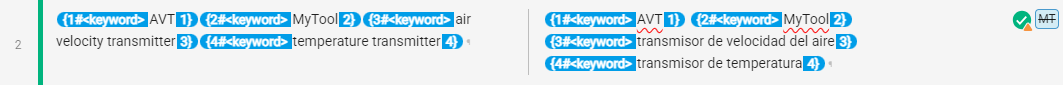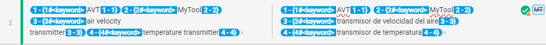 | <keyword>: Industry or customer term | Its content refers to industry or customer lingo. It should be present in the termbase and translated consistently. |
