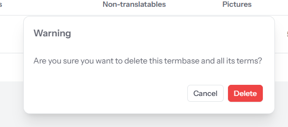 - Click ‘Delete Termbase’.